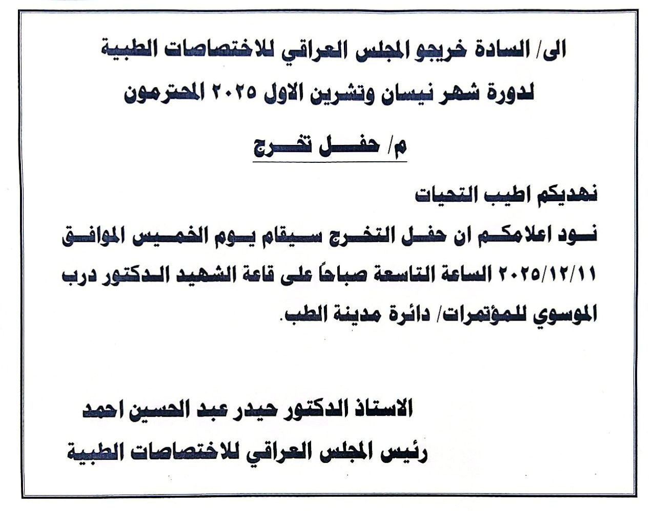 تم تأسيس المجلس العراقي للاختصاصات الطبية عام 1986 وبدأت الدراسة فيه عام 1988 وقبل 129 طالباً موزعين على أربعة دراسات تخصصية فقط ورغم الظروف الصعبة تواصلت المسيرة وتوسعت